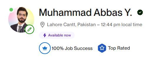 Muhammad Abbas Yousaf is a Top-Rated Upwork freelancer and innovative leader driving RoboNexusCo’s breakthrough AI solutions.